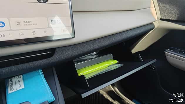 这种追求视觉效果,而牺牲了交互便利性的设计,也出现在了一些别的地方:顶棚部分除了E-CALL和双闪之外,阅读灯改成了欧系车很喜欢用的触控表面,甚至前风挡加热也被塞了进来;手套箱完全没有外侧的物理按键,只能通过车机软开关和语音打开,等等。