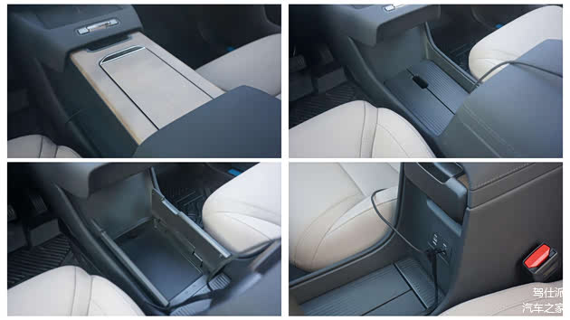 配置方面,虽然全系都有中央扶手和杯架,但只有两个高配才有后排的独立空调、顶配才有后排加热,配备的两个USB口都是Type-C格式的,对旧手机不是很友好。