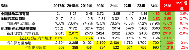 如果中国每千人拥有的汽车按300辆来算,置换周期稳定在15倍,那么每年汽车销量能稳定在2800万辆左右,相比2025年约2550万辆的销量就还有近10%的增长空间。
