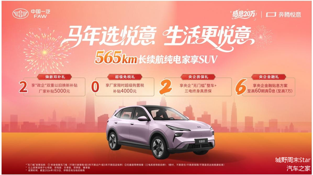 2026 年 1 月 22 日,一汽奔腾悦意 03 家族迎来新成员 ——565km 欣享版正式上市,指导价仅 10.99 万元。这款主打 “大大大纯电家享 SUV” 的车型,不仅把续航和空间做到同级顶流,还在舒适、智能上全面升级,再加上诚意满满的购车政策,直接戳中务实家庭用户的痛点。