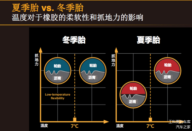 我们平时使用的夏季轮胎,它的橡胶配方在7度以下的气温会开始变硬。