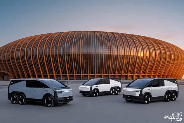 动力方面,新车采用 800V 碳化硅增程动力平台,CLTC 续航里程大于 1000km,配备 6x6 全轮驱动,带有后轮转向,具备更好的承载能力和越野性能。