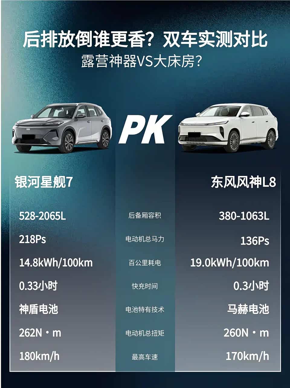上周带两家人去野营,我的银河星舰7 2025款探索+版后排一放倒直接变1.8米大床,528L后备箱塞下帐篷+烧烤架还有空位。他东风风神L8理想版号称2825mm轴距,结果后备箱塞个折叠桌就喊挤,最后冰镇饮料全放我车下沉式储物格里😏