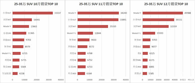 ▲10/11/12月 25-35万(TP加权平均)SUV上险量排名