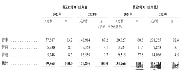 从占收入比例来看,2025年前9个月,伯镭科技的智车收入占总收入的92.4%、智矿占3.1%、智运占4.5%。