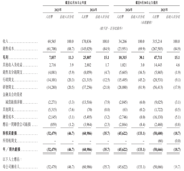 不过在目前,伯镭科技暂时处于亏损状态。在2023年和2024年,伯镭科技的净亏损分别为人民币0.32亿元、0.61亿元,两年净亏损和为0.93亿,2025年截至9月30日止九个月净亏损为人民币0.59亿元,较2024年同期的0.46亿元同比扩大约28.6%。