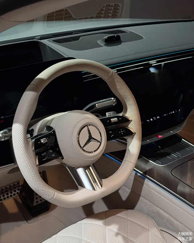 内饰采用了新的设计,拥有非常豪华的风格,质感出色,提供12.3英寸全液晶仪表,还搭载14.4英寸的中控屏幕,还配置有12.3英寸副驾驶屏幕,配置有MB.DRIVE辅助驾驶,内置最新的MBUX智能人机交互系统。