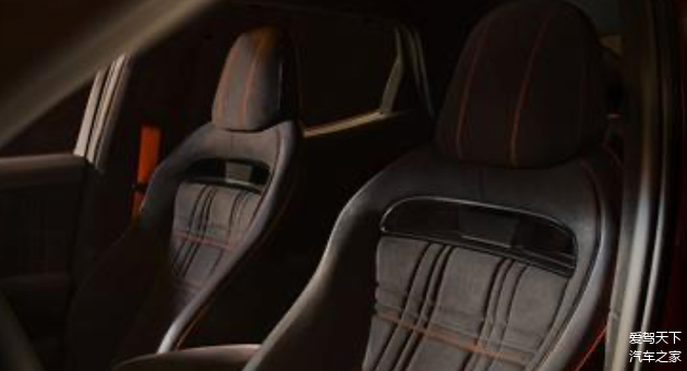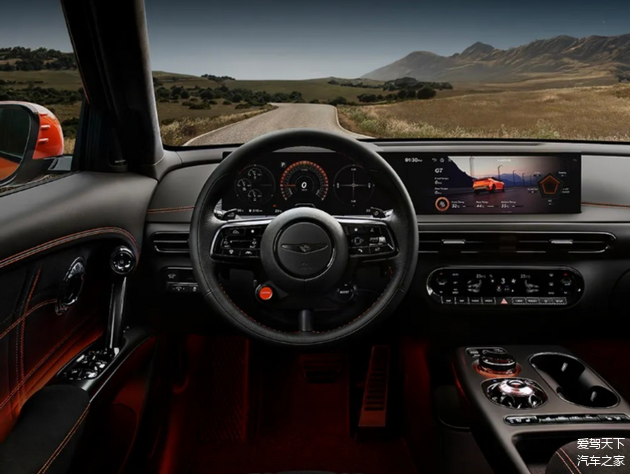 座舱内部,方向盘上醒目的Magma专属按钮,彰显着捷尼赛思GV60 Magma的独特身份,中控提供双联屏,尺寸显得十分克制,而且还可以见到不少实体按键,座椅采用Chamude麂皮材质,并嵌有熔岩橙缝线,透露着细腻高级的质感。