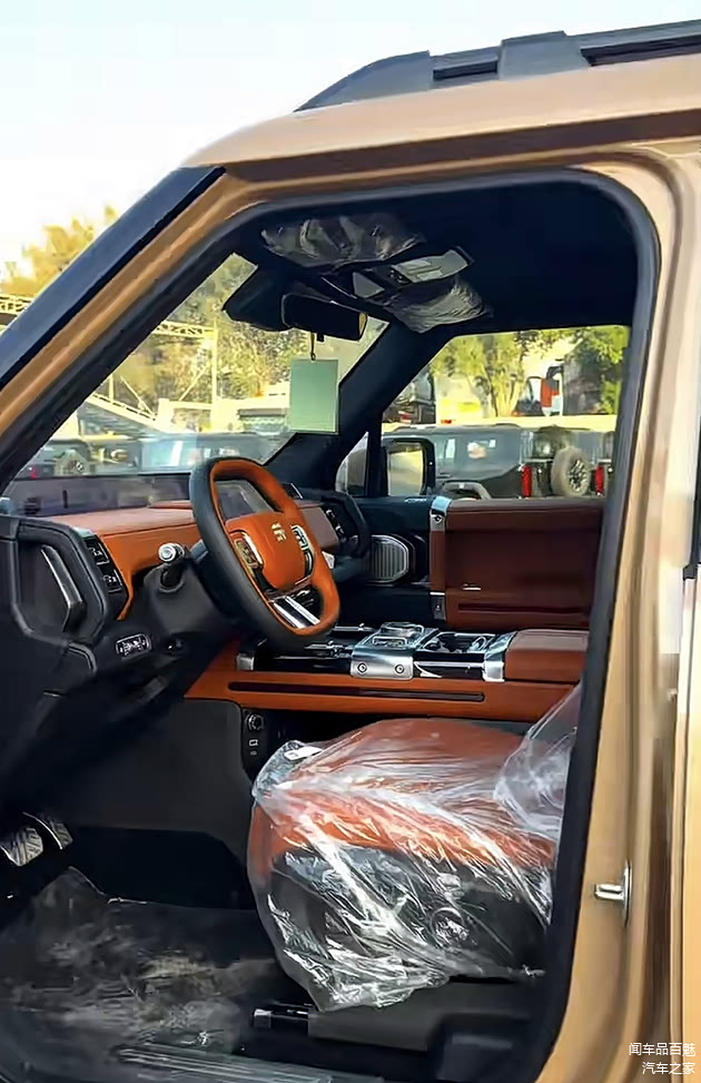 车侧一面,作为一款双排皮卡,虽然其车身整体并不会显得修长,但其车身棱角分明的线条铺陈,搭配外延的侧踏板、粗壮的前后熏黑轮拱以及哑光网格样式轮毂,却足够塑造出颇具“机甲风”的硬派视觉效果。