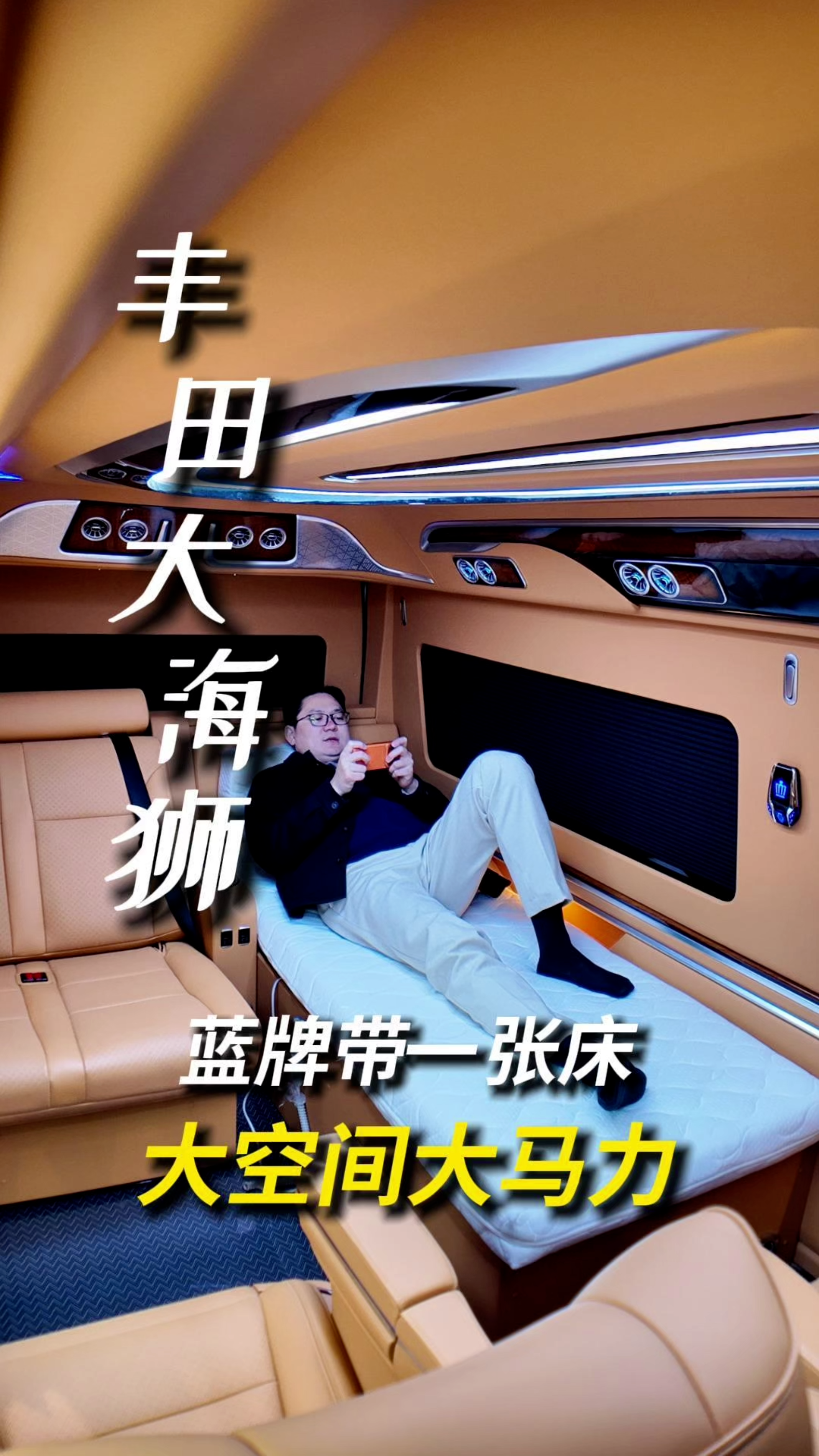 车内有卫生间,有大床,蓝牌你的C本就能开,节假日上高速也是免费的……