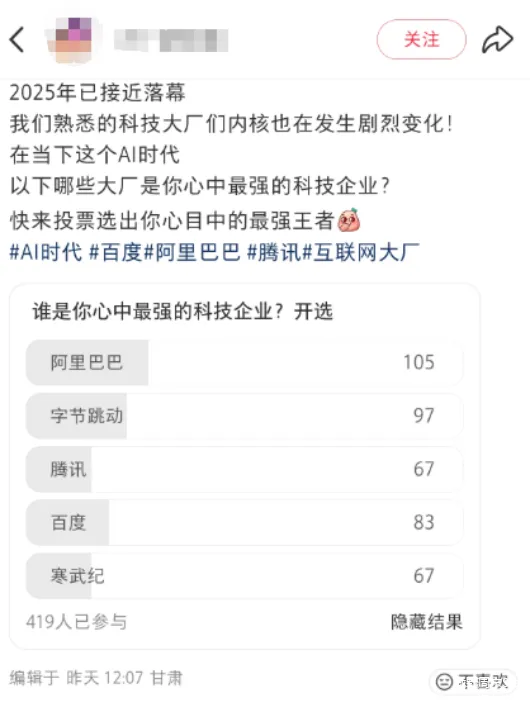 有网友曾经发起AI时代公司排名投票,一则评论精准道出现状:“百度之所以能继续排名前三,都是因为萝卜快跑”。