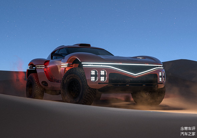 那标志性的两条线大灯还在,但除此之外,它更像是一台从达喀尔拉力赛场上逃出来的赛车,或者是蝙蝠侠在那部被删减的沙漠戏份里的座驾。