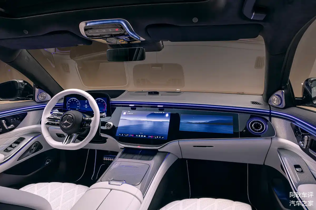 车机系统搭载奔驰最新的MBUX智能人机交互系统,并首次内置了自研的MB.OS操作系统。系统整合了更多人工智能语音助手功能,并原生集成了谷歌地图等应用。