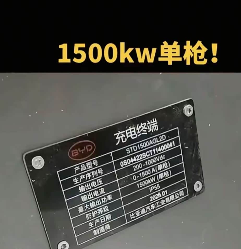 比亚迪最新兆瓦闪充单枪最高功率高达1500千瓦
