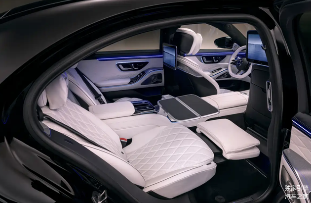 新一代奔驰S级将提供四座布局,后排配备“头等舱座椅”,支持最大43.5度的靠背调节与50度的腿托角度,并配备双13.1英寸显示屏及触控遥控器,可以听音乐、看视频或玩游戏等。新车还提供发光杯架、两个手机进行无线充电面板,首创前排加热式安全带(44℃)、6种座椅按摩模式及39扬声器柏林之声音响等舒适性配置,进一步优化乘坐交互体验。