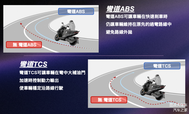 改款 MMBCU 搭载最新的 BOSCH 10 ABS 防锁死刹车系统、TCS 循迹防滑系统,另外品牌主打当家旗舰技术也并未缺席,包括智能油电.三零科技的零后仰系统 2.0、零噪音零污染怠速熄火系统、零延迟启动系统,让整体的行车质感有效提升。
