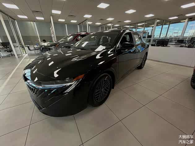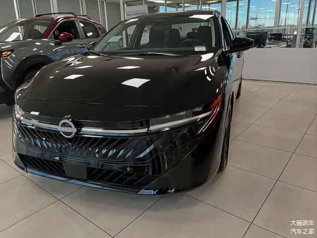 全新 日产Sentra,引入后的车型为日产轩逸,新车在外观上采用了非常动感的设计,实车采用了黑色的涂装,造型非常帅气。