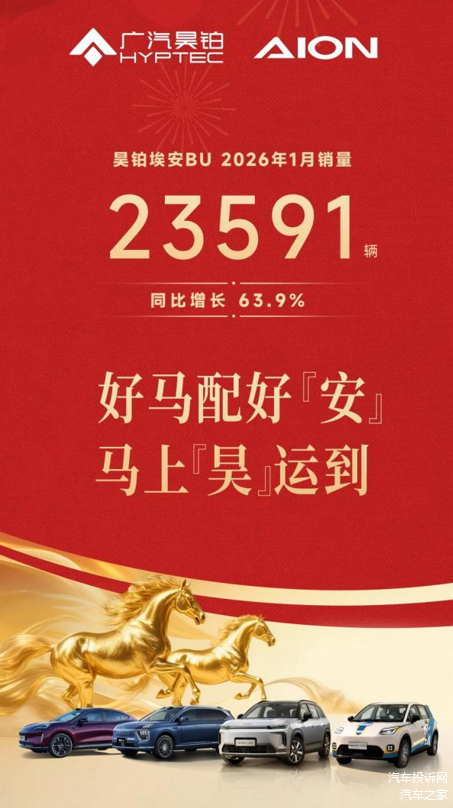 2026年1月,广汽集团新能源业务迎来开门红:全新组建的昊铂埃安BU在首个完整运营月交付新车23591辆,同比增长63.9%,环比增长亦保持两位数。这一成绩不仅延续了2025年第四季度的回暖势头,也验证了“番禺行动”改革框架下双品牌一体化运营的可行性。