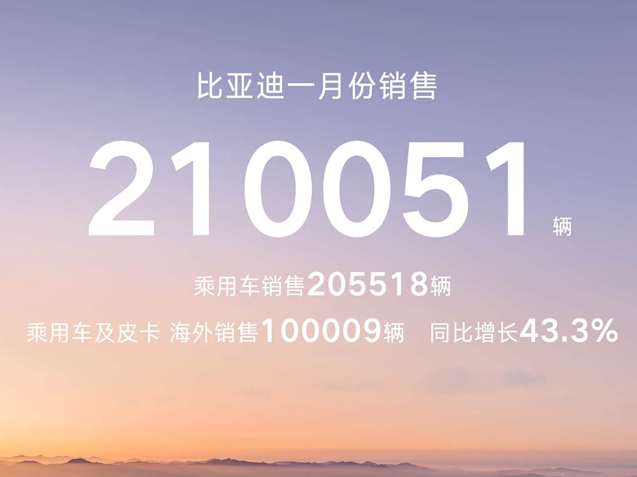 比亚迪一月销量出炉,暂让冠军席位