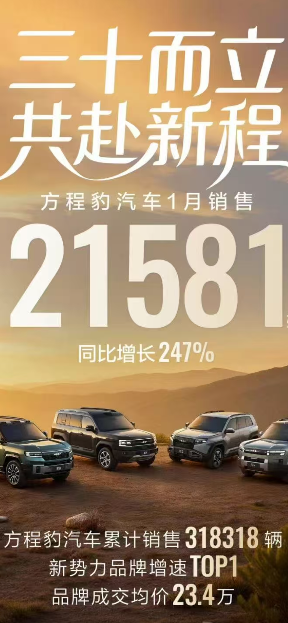 吉利星越L蝉联燃油SUV销量年度总冠军,1月销量达25066辆(含出口);中国星高端系列1月销量45090辆,环比增长160%,历史累计销量近180万辆。