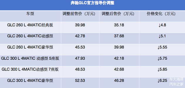 继宝马之后,奔驰多款主力车型的定价也迎来了调整。2月1日,我们从梅赛德斯-奔驰官网获悉, 奔驰GLC全系车型价格下调,最新官方指导价35.18万-46.28万元,相比此前降低4.8万-6.25万元不等。