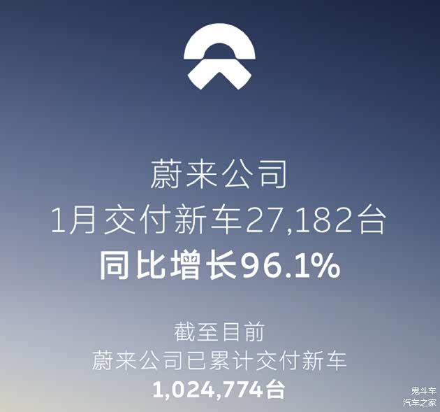 蔚来汽车:1月交付新车27,182辆