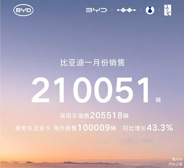 比亚迪:1月份销售210051辆