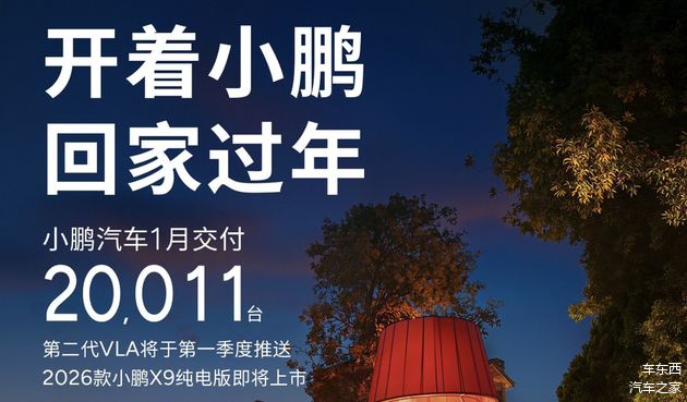 小鹏2026年1月交付量为2.00万辆,同比下滑34%,环比下滑47%。