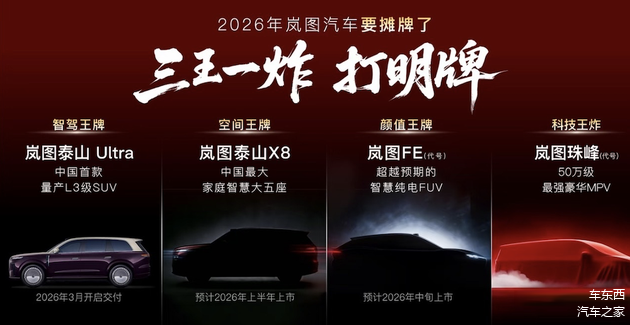 根据规划,岚图今年还会带来4款车型,包括岚图泰山Ultra、岚图泰山X8、代号为“FE”的全新FUV、代号为“珠峰”的50万级MPV,覆盖SUV、FUV、MPV市场,可以预见今年车市竞争依然激烈。