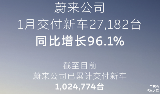 蔚来集团1月交付新车2.72万台,同比增长96.1%,环比下滑43%。