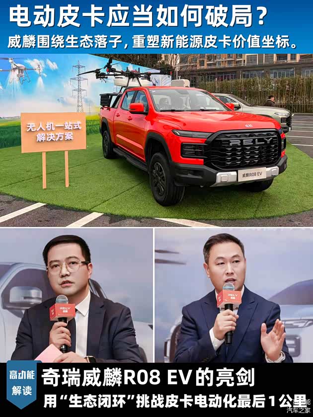 巨大的差距,恰恰被威麟视为最后的窗口期。 他们推出的首款纯电皮卡R08 EV,选择了一条超越产品本身的路径——构建以“低空经济”为切入点的生态闭环。