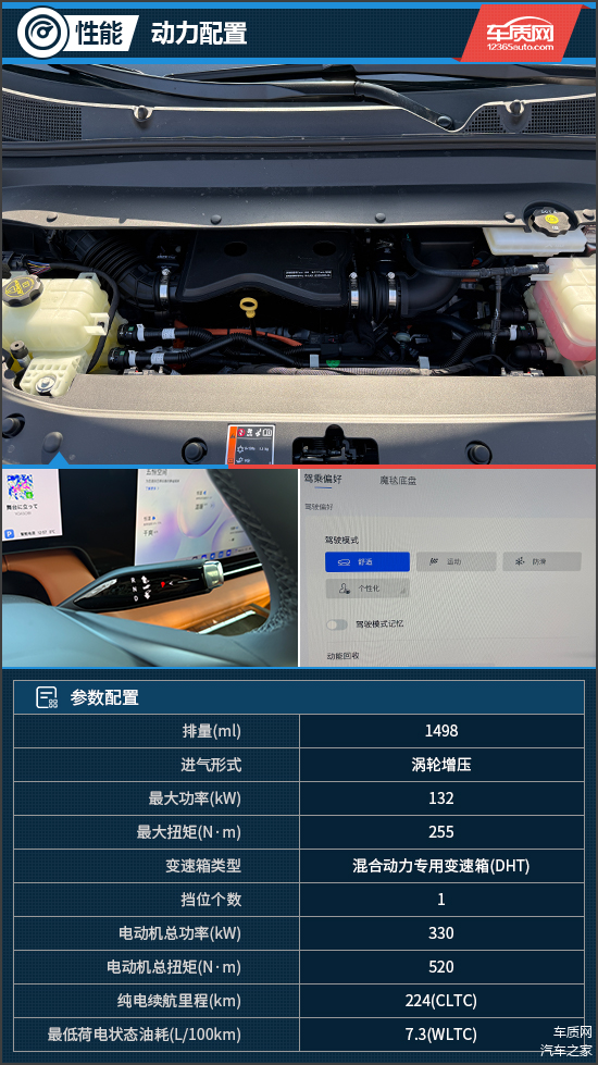这套插混系统的特点在于动力输出的一致性,即便在低电量状态下,巡航与急加速的表现依然平稳有力,几乎感觉不到性能衰减。日常驾驶中,标准模式下的动力响应线性,主观感受很从容,尤其适合城市路况,营造出轻松舒适的驾乘氛围。而当需要超车或加速时,深踩加速踏板,动力储备便会迅速释放,带来明显的推背感。即便处于高速行驶中再次提速,也能轻松完成并线超车任务。