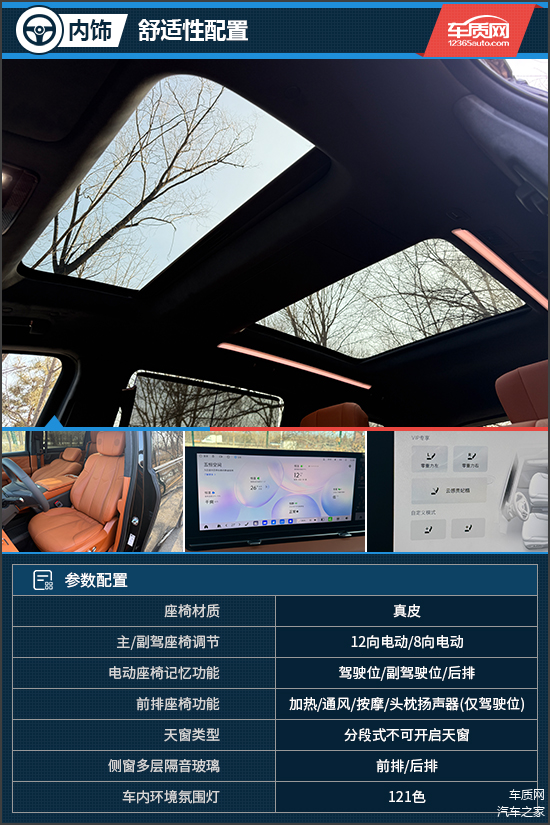 在舒适性配置上,评测车以松下nanoeX净化和超长护眼智慧顶灯等为核心,打造出恒温、恒湿、恒氧、恒洁、恒静的“五恒”大健康座舱。行业首创的多姿态零重力座椅,更能根据前后排乘坐状态自动调节至最佳角度。值得一提的是,右侧座椅可与副驾联动,一键展开“云感贵妃榻”,配合10点式气动按摩,为用户带来媲美头等舱的舒适体验。