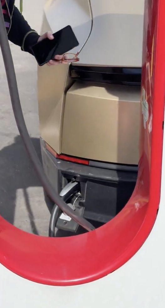 特斯拉无人车Cybercab正在美国各地进行公开测试,最近有网友拍到了工作人员给Cybercab充电的视频,引发了讨论,因为这台车的充电口和其他特斯拉完全不一样。