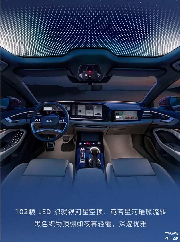 重点说说这个银河星空顶,确实是点睛之笔。它由102颗RGB LED灯珠组成,能调出30种颜色,搭配黑色织物顶棚,晚上开车时氛围感拉满。灯光亮度和颜色过渡都很自然,没有廉价的塑料感,不管是独自通勤还是和朋友出行,这份小浪漫都很戳人。