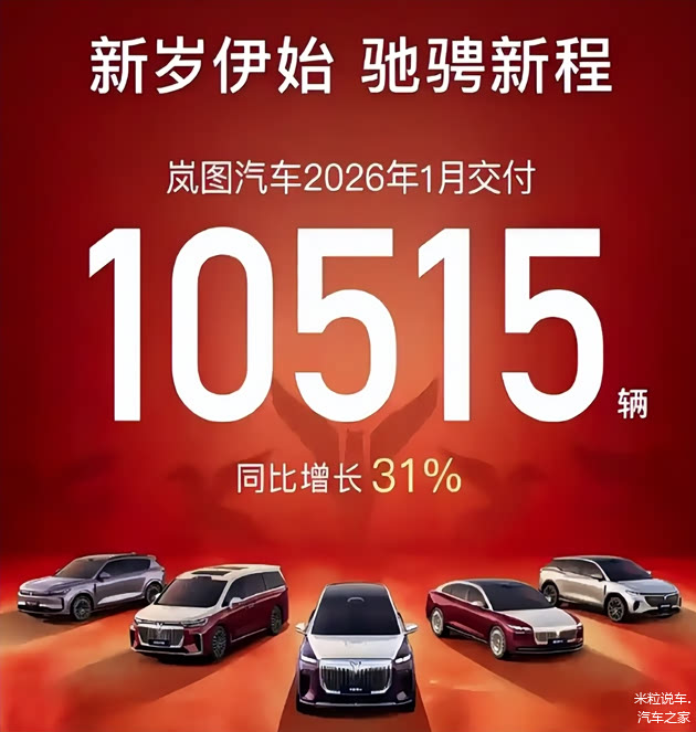 第4家车企就是岚图汽车了,其实岚图汽车已经全面拥抱华为,今年1月份的交付量为10515辆。说实话,这样的成绩表现已经算非常不错了,因为岚图这家车企旗下新车现在走的都是中高档路线,并且这家车企旗下已经有好几款新车迎来了曝光,所以未来新车的销量大概率是会进一步提升的。