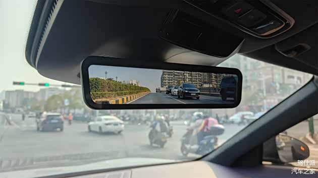主驾人机布局的槽点有两个:一是无框外后视镜的外侧过窄,外侧车道的情况很难看得全;二是车里的流媒体后视镜位置略显靠后,不太好观察,这可能和前风挡顶端的位置有关,不过清晰度还不错,而且不会反光。