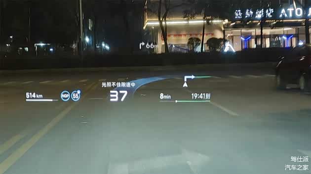不过,HUD的固有问题依然存在:除非将亮度调到最高或者处于夜晚状态,否则投影还是会一定程度上受到外界干扰。尤其是因为这套HUD的尺寸比较大,所以功能上甚至会有倒车影像以及转弯时的侧视影像,这时候就容易看不清了,不如直接看车机画面。