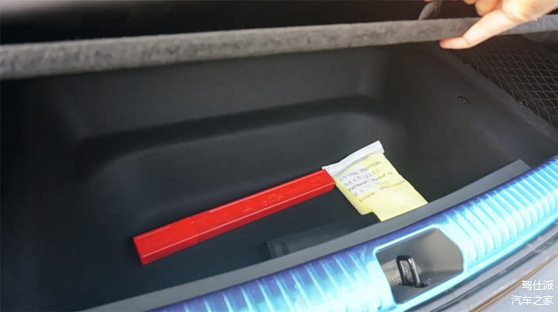经过三电方面的布置整合之后,P7终于拥有了前备厢。只是56L的容积不算大,位于车头的中央部分,受限于车头长度,个头比较矮的用户拿取物品时会比较吃力。不过里面设计了隔断,拿开之后还隐藏了带有排水孔的下层,适合用来放食物、沙滩玩具等需要和车内其它空间隔开的零碎东西。