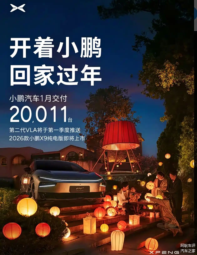 小鹏汽车1月交付新车20,011台,同比下降34.07%,环比下降46.65%。