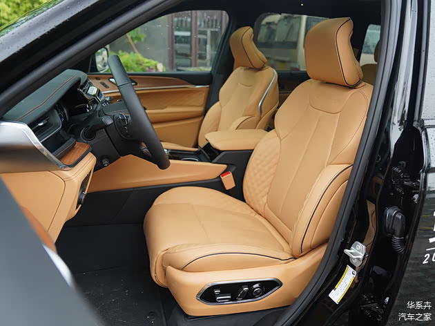 座椅材质上,远峰版采用Nappa纳帕皮,巅峰版则升级为Palermo巴勒莫半苯胺工艺头层牛皮。前后排座椅均配备加热和通风功能,前排还额外增加了按摩功能。