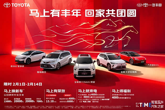 春节前夕通常是车市促销的活跃期。近日,一汽丰田宣布于2月1日至2月14日期间,推出针对多款主力车型的限时优惠活动,为有购车或换车打算的消费者提供了一系列购车补贴与服务权益选择。