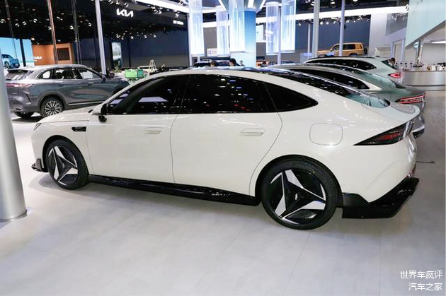 首先颜值和细节方面,整体是标准的电动轿跑范儿,封闭前脸加溜背造型,贯穿式尾灯里嵌着“FULWIN”的英文标,挺有辨识度。侧面无边框后视镜和半隐藏式门把手,搭配花瓣式轮毂,运动性能拉满。