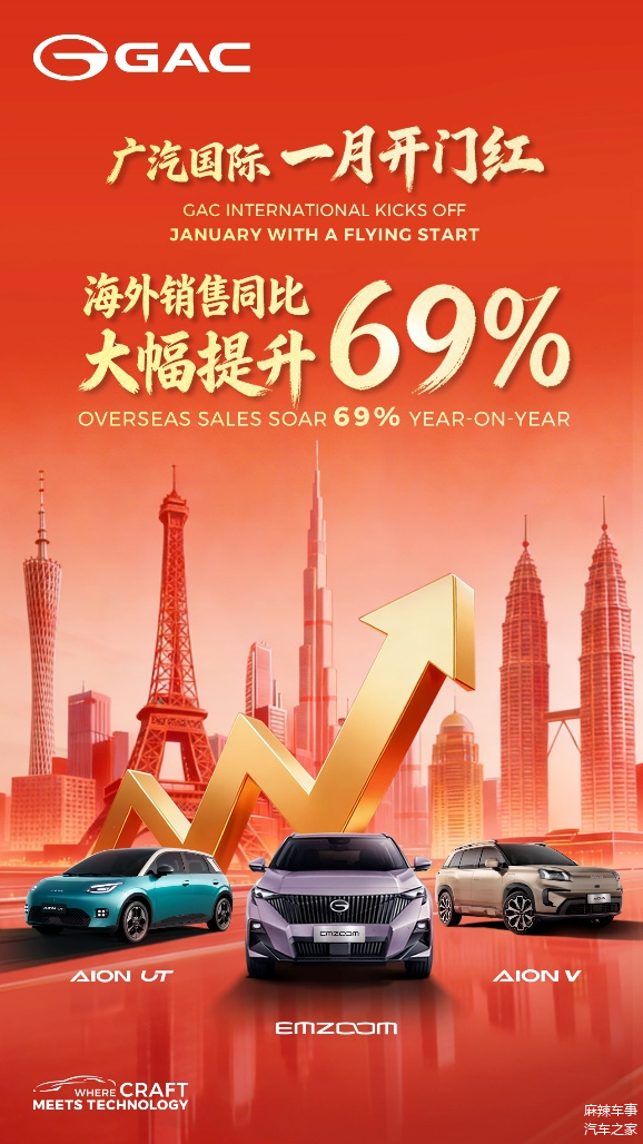 2026年开年,当全球汽车产业仍在供应链波动与地缘博弈的迷雾中摸索时,广汽集团以一份亮眼的海外销量成绩单,向世界展示了中国汽车品牌全球化进程的深层逻辑——1月海外销量同比激增69%,延续了此前两年近三倍增长的强劲势头。