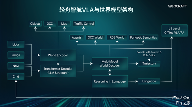 量产提速的同时,轻舟智航并未放松技术研发。本次发布会的技术核心,是VLA+世界模型统一架构的首次亮相,这套架构致力于打破L2与L4的技术壁垒,推动智驾技术从“类人智能”向“超人智能”迈进。