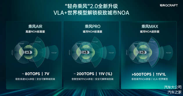 于骞表示:“我们要做自动驾驶领域的DeepSeek,不拼蛮力堆算力,要把每一分算力的价值都榨到极致。”随着该方案落地,轻舟智航同步推出“乘风2.0”三级产品矩阵:AIR主打极致高速NOA,PRO聚焦普惠型城市NOA,MAX则以超500TOPS算力融合新技术,冲击极致城市NOA体验。