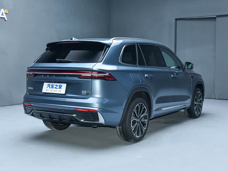 侧面造型方面,车顶带着明显的弧度,配备有粗壮的行李架,有着比较强的力量感;腰线采用了贯穿式设计,从前翼子板延伸到车尾,腰线采用了贯穿式设计,点缀出了车身侧面的层次感;轮眉和侧裙部分设计有粗壮的黑色饰板,带来了一定的力量感;轮毂采用了多幅式造型,给人的感觉足够大气。