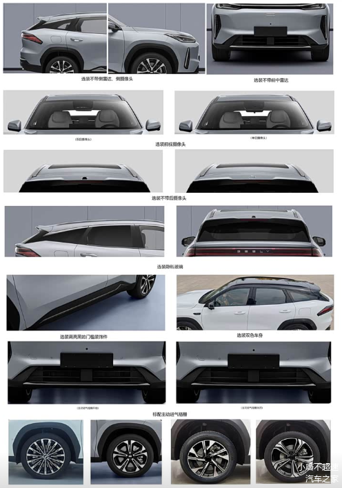 从已公布的官图来看, 银河M7在外观上采用了品牌最新的家族式设计语言,前脸为封闭式格栅搭配贯穿式灯组,下方设有梯形进气口与镀铬装饰通风口;车身侧面线条流畅,采用悬浮式车顶设计,并保留了传统门把手;车尾同样采用贯穿式尾灯,中央嵌有“GEELY”英文标识。其车身尺寸为长4770mm、宽1905mm、高1685mm,轴距为2785mm,定位为五座插电混动SUV。