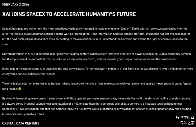 这不仅是SpaceX和xAI使命的下一章,更标志着新的征程,规模化发展以创造一颗有感知能力的“太阳”,从而理解宇宙,并将意识之光播撒至群星。”