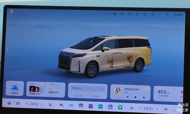 升级之后从主页上的最大变化,就是3D桌面支持自定义车身颜色、车衣、车贴。不管你贴不贴改色车衣,都可以在车机里享受一把定制。除此之外,整个UI视觉也都有了升级,图标、壁纸、控件的质感都有了提升,还新增加了字号调节,这就对我这种大字爱好者相当友好。